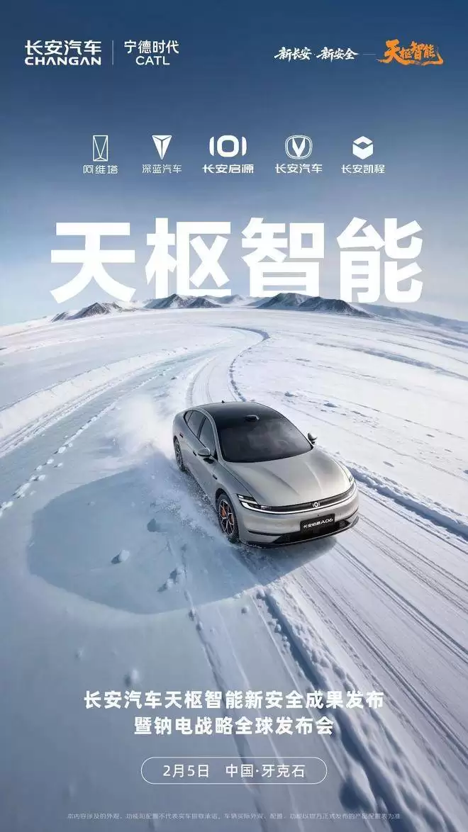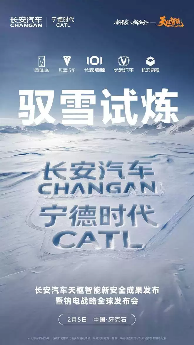 长安汽车近日宣布,将于2月5日在雅克石举办天枢智能安全成果发布暨钠电战略全球发布会。此次活动将联合宁德时代,共同探索低温环境下的新能源汽车技术突破,旨在破解冬季出行时遇到的续航与安全难题。