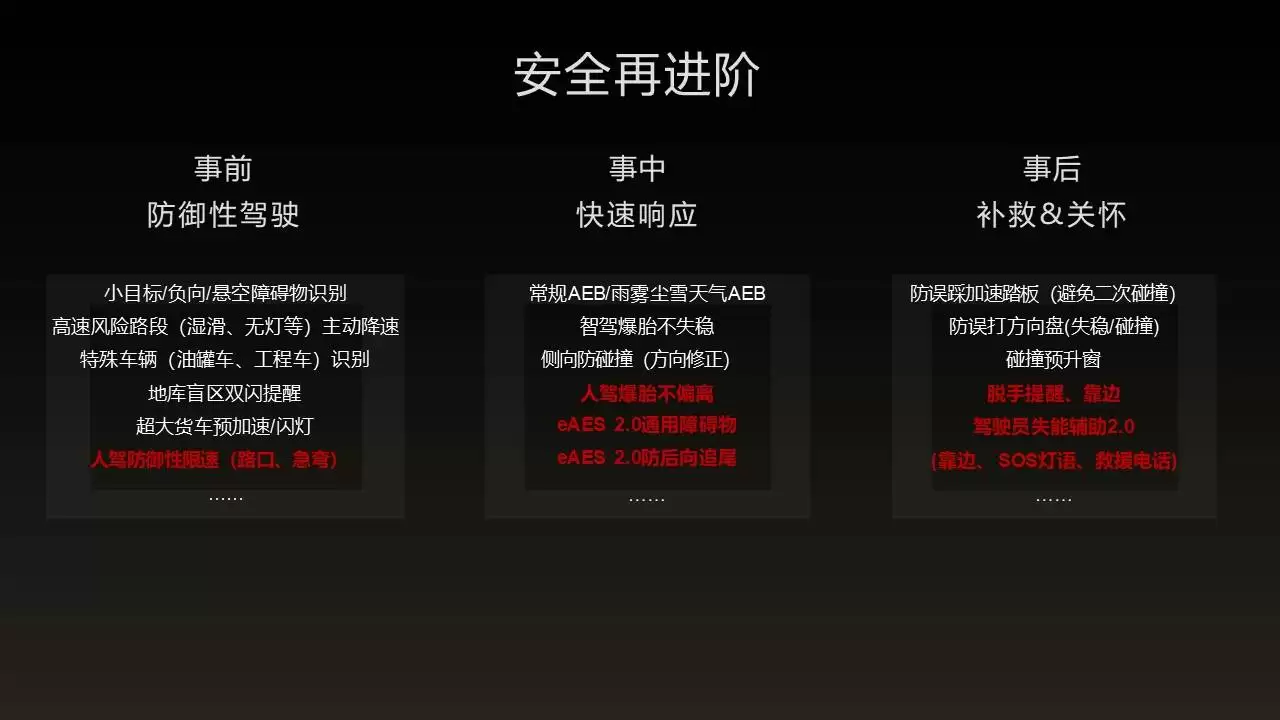 跨域融合技术进一步拓展了安全的边界。乾崑智驾ADS与智能车控、数字底盘深度协同,在爆胎或对开路面等紧急工况下依然能保持车身稳定;并与智能车灯系统联动,实现了诸如夜间行人穿越预警等创新的跨域安全功能。这种底层技术的纵深整合与横向贯通,最终构建起覆盖全速域、全目标、全方向、全天候、全场景的“五维安全”体系,使系统在主动安全领域达到了行业领先水平。