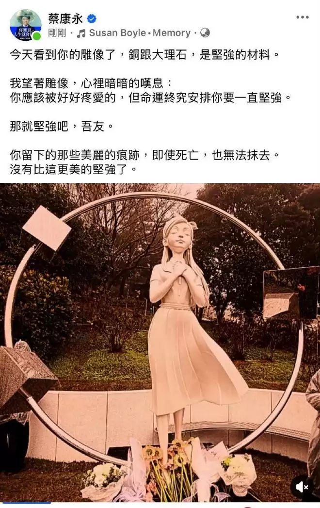 康永哥:今天看到了你的雕像了,铜跟大理石,是坚强的材料。