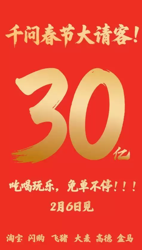 千问 App 砸 30 亿开启春节免单活动