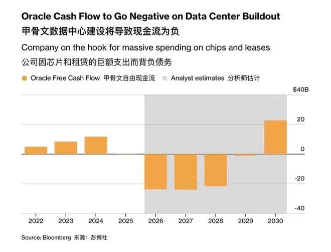 分析师指出,持续的 AI 投资热潮引发市场对回报周期的担忧,因数据中心建设,甲骨文的自由现金流已转为负值,预计将持续至 2030 年。公司未来数年仍需投入数百亿美元用于芯片采购与数据中心租赁。