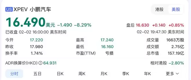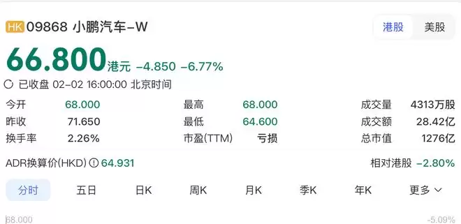 小鹏汽车股价暴跌:美股重挫8.29%,港股跌6.77%