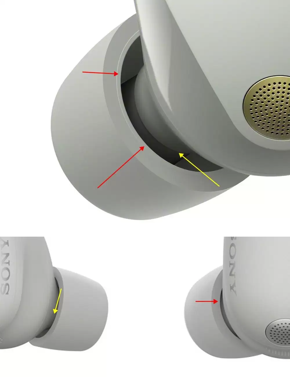 耳塞套方面,虽然材质上依旧沿用了聚氨酯泡沫,但结构上似乎移除了WF-1000XM5耳塞内部那层红色的硅胶支撑结构,整体更为柔软一体化。