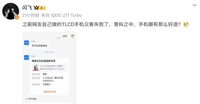 最近,据博主@闪飞爆料,名为「TLCD」的民间众筹护眼手机项目失败了,部分参与者已经在申请退款。