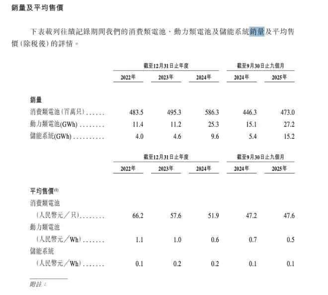 与之相对的是,电池的售价均有一定程度的下滑。消费类电池从47.2元/只下降到47.6元/只。动力电池平均售价也在同步下滑,由2024年前第三季度0.7元/Wh下降至截至2025年前三季度的0.5元/Wh。