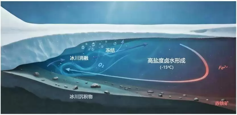 在如此低温下,海水为何没有完全冻结?研究进一步发现,当时局部水体盐度极高,约为现代海水的四倍以上,从而使冰点下降至约零下11℃,与低温推算相吻合。研究团队认为,这种极寒、高盐的极端环境,很可能形成于巨大冰架的底部,类似现代南极冰架下存在的“冰泵”循环。
