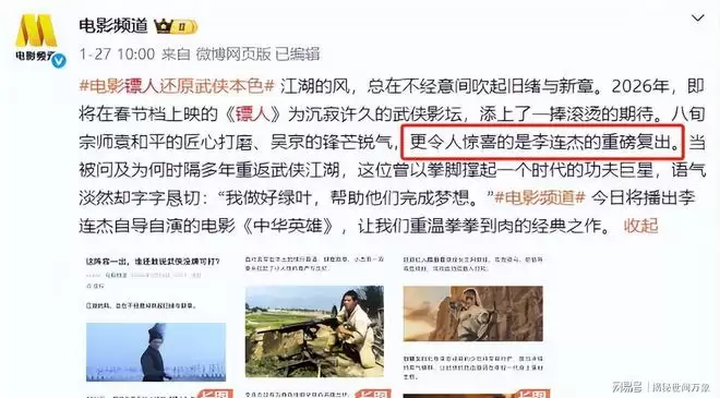 并且还有媒体特地提到了李连杰,表示对于他本次的复出很惊喜,