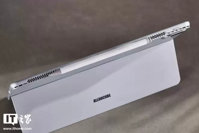 酷比魔方 iWork GT Ultra 自带铰链支架,支持最大 155° 超大开合角度,多角度可悬停,从而适应不同的应用场景。支架展开时的阻尼感还是比较明显的,不会太松,掰起来也不会太费劲。