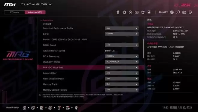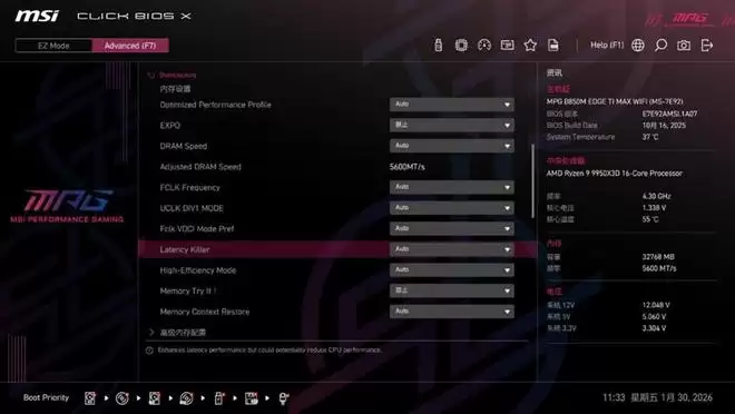 至于内存超频潜力,MPG B850M EDGE TI MAX WIFI刀锋 钛也达到了微星一 贯的水准,超频能力远超业内竞品。