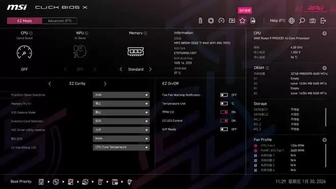 全新的Click BIOS X图形化UEFI,比起前代不论是布局还是界面都有了很大改变。