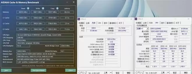 测试使用的是雷克沙ARES DDR5 6000 C26 16GB x2套条,时序26-36-36-68,电压1.45V。