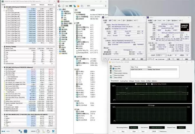 我们使用AIDA64 FPU进行烤机测试,测试时室温28度处理器为锐龙9 9950X3D。