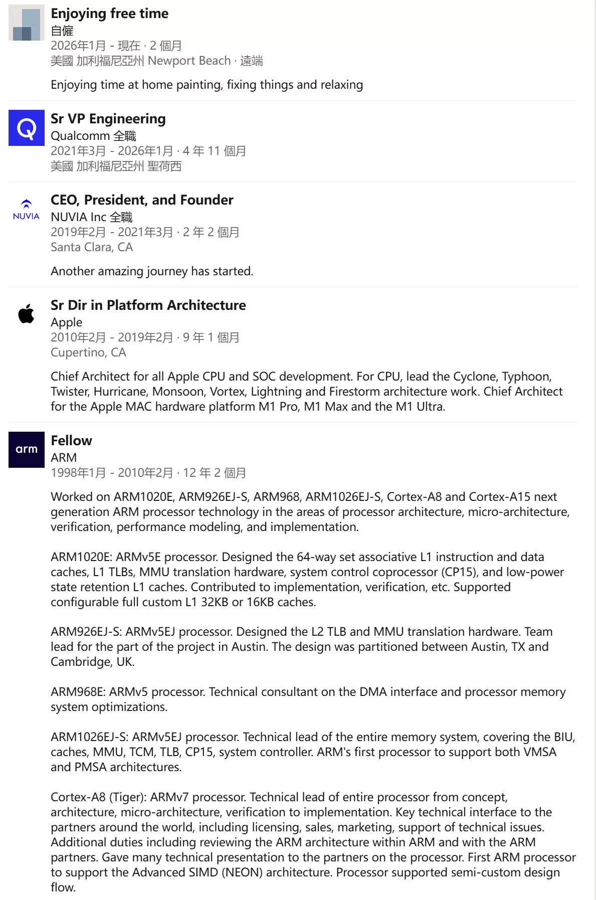 离开苹果后,杰拉德·威廉姆斯三世自立门户,创立了NUVIA公司。随后,高通于2024年以14亿美元收购了这家公司,杰拉德·威廉姆斯三世也随之加入高通,担任高级工程副总裁。他主导开发了Oryon CPU架构(原Nuvia Phoenix),后来成为骁龙8 Elite Gen 5以及骁龙X Elite的重要技术基础。