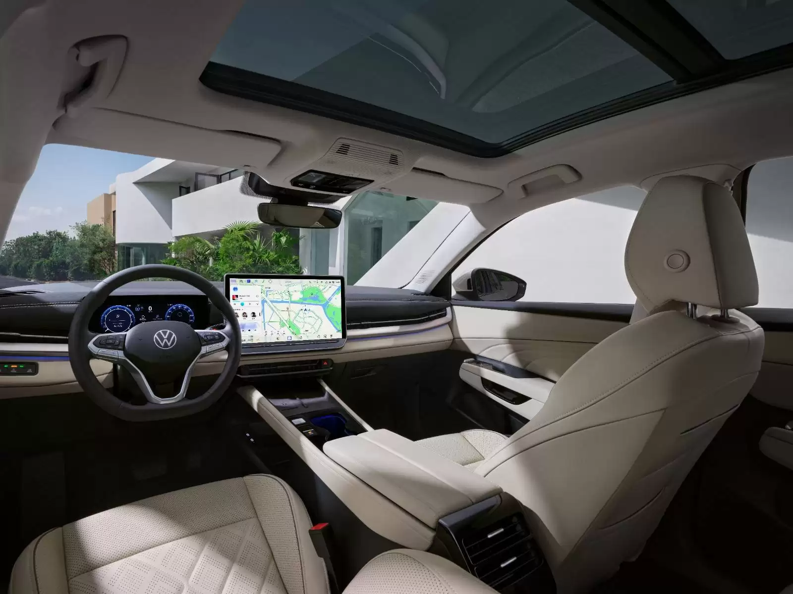 智能化是全新一代速腾L的核心突破点之一。其搭载的智能座舱系统彻底颠覆了传统燃油车的交互体验:15.2英寸2K悬浮触控屏、10.25英寸全液晶仪表与W-HUD平视显示系统实现三屏联动,操作流畅度与显示精度足以媲美新能源车型。科大讯飞语音系统支持95%以上的识别准确率,覆盖导航、空调、多媒体等高频功能,用户只需动动嘴巴即可完成操作。更引人注目的是,该车型成为A级燃油车中首个实现端到端高速NOA功能的车型,其智驾系统可从容应对复杂路况,显著减轻长途驾驶的负担。