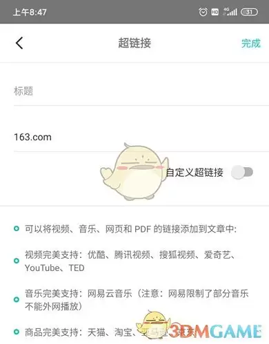 在编辑文章时,我们可以直接使用编辑器自带的插入功能来添加本地的视频文件。不过需要注意的是,根据官方最新的使用指南,《Zine》应用本身并不支持直接上传在线视频,你需要通过嵌入外部链接的方式来实现视频的展示,例如引用网易云音乐等平台上已发布的视频内容。