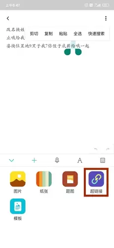 1、首先,选中我们想要添加超链接的文本段落,然后在工具栏中找到“超链接”的图标并点击。