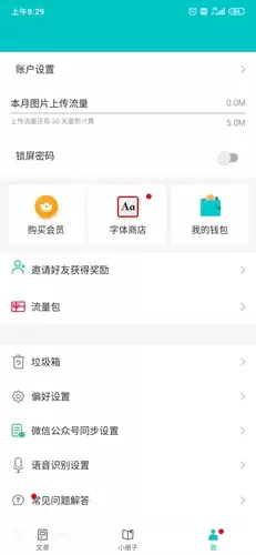 4、最后是个人中心界面,在这里可以进行会员升级或购买文章字体,还能咨询与软件相关的各类问题。