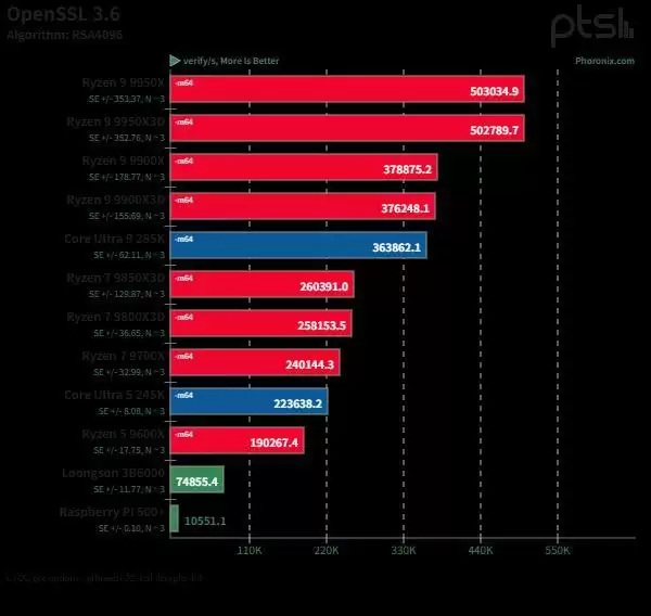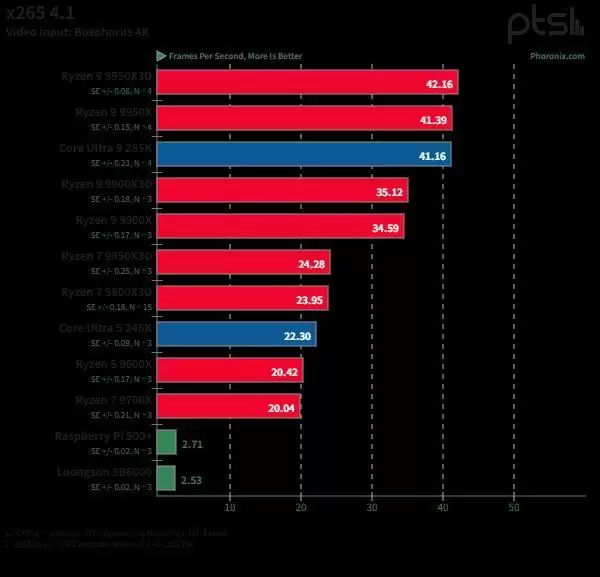 Phoronix在Linux系统下与当前AMD Zen5和Intel Arrow Lake桌面处理器的做了一番性能性能对比测试。此外,为了便于比较,还加入了Raspberry Pi 5(Raspberry Pi 500+)作为ARM架构的参考。