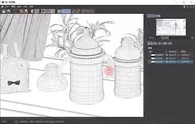 另外,在材质设置方面,针对模型的不同部分,可以根据需要设置不同的材质,使其在渲染线框图时呈现出各异的线条效果。