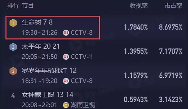 新剧《生命树》刚开播便牢牢占据全国收视第一,或许一开始,略显严肃的题材劝退了一部分观众,但随着口碑发酵,收视显然还有上涨的空间。