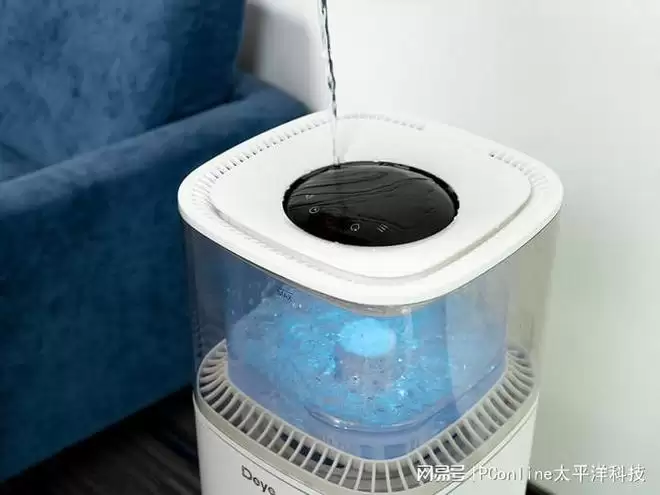 在水箱上,德业也有着自己的巧思。这样的造型让水箱水位清晰可见,对于需要频繁关注用水量的加湿器而言,这一点非常重要。结合天空氛围灯设计,无论是夜间还是日常的快节奏生活,都能一眼判断是否需要补水。