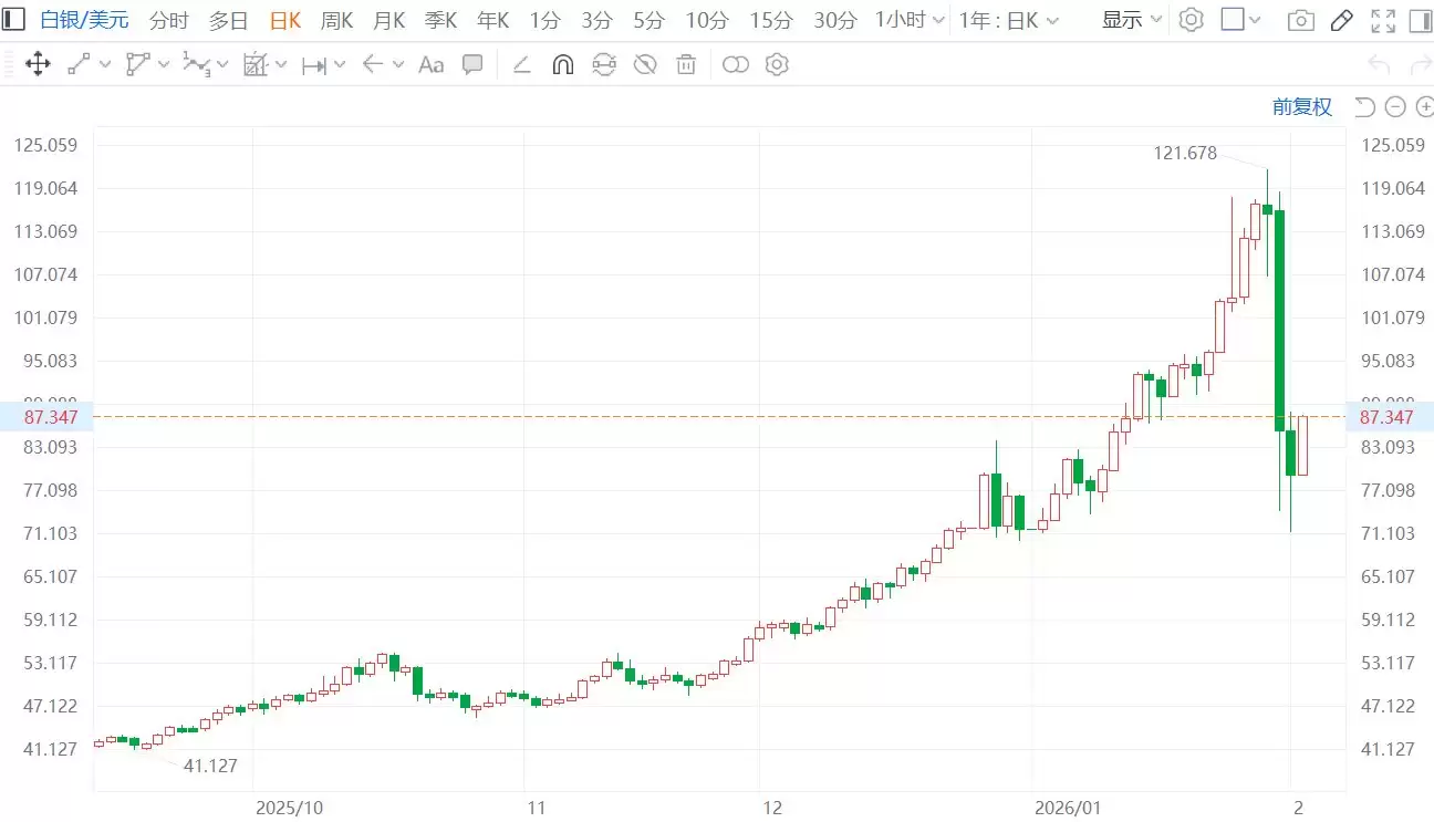 格隆汇2月3日|现货白银暴涨10%,现报87.35美元/盎司。