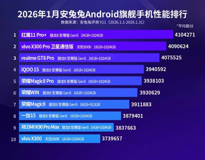 骁龙两榜领衔!1月手机性能榜揭晓,联发科旗舰单领风骚