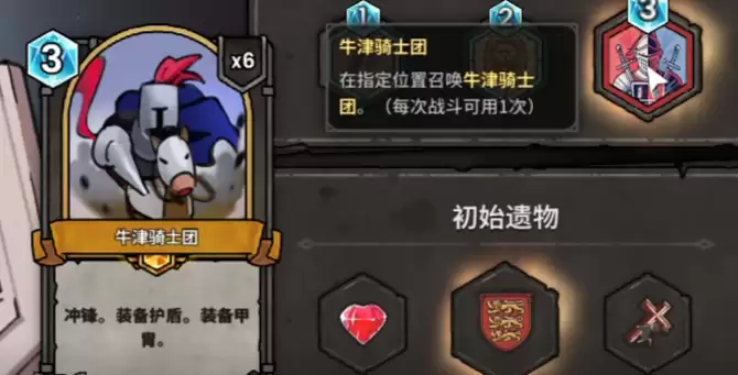 在宝物方面,可以选择刷新类的遗物,送达信件任务还能给钱。火堆强化后可以直接获得幽灵骑士。费用减少之后,就再也不需要担心会卡手,很快就能来到第1关的Boss战。这张红卡的Boss确实很烦人,上面站满了弓箭手。如果没有优先解决掉它们,那简直就是慢性死亡。所以需要先清理这些杂兵,然后再去应对Boss。在Boss回合,还好有骑士团自带的护甲扛伤,补上一个剑与青团之后就能够顺利地通过。