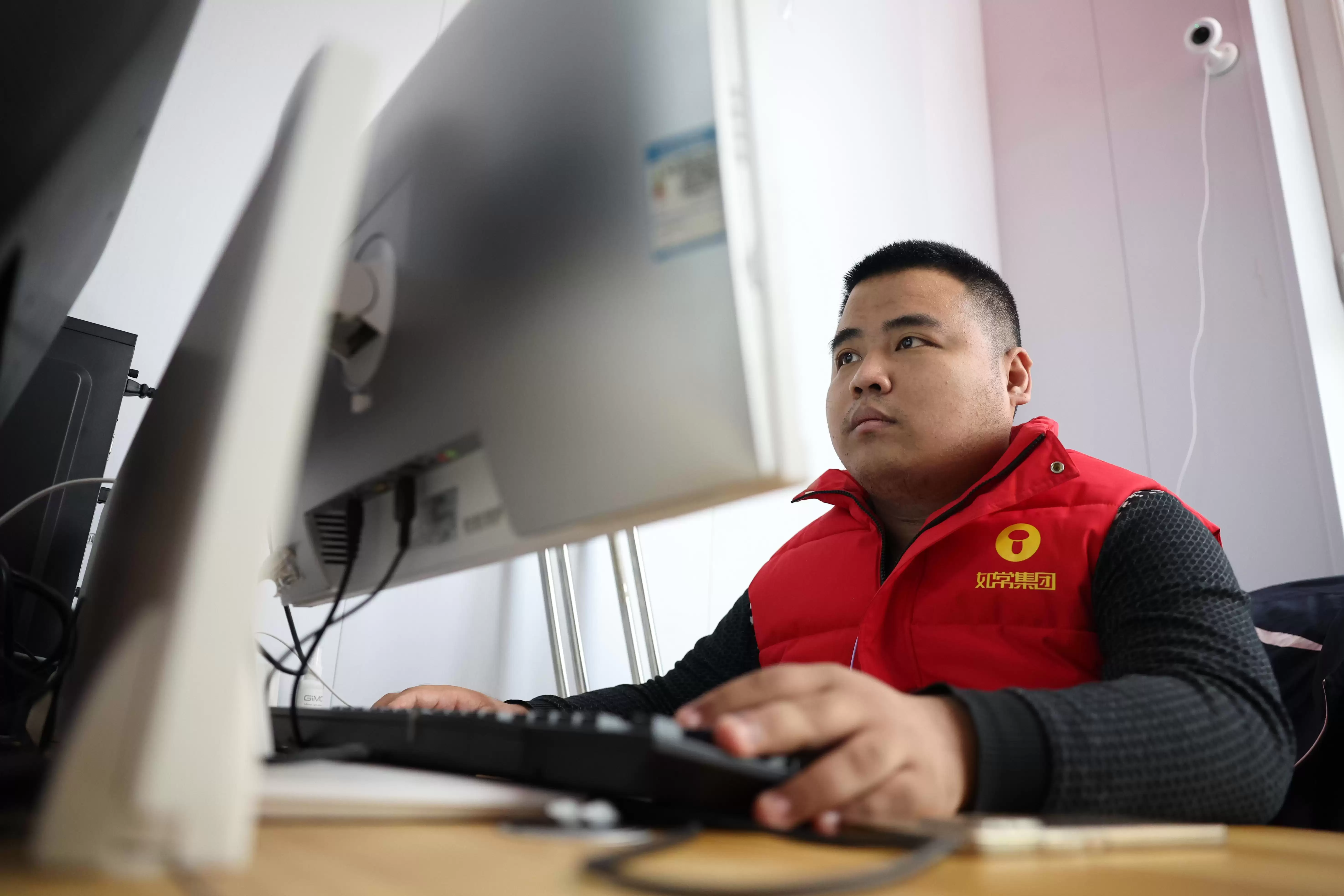 在兰州市心连心社会工作服务中心的残疾人“AI就业工坊”,AI训练师杨志文在进行数据标注(新华社记者陈斌 摄)。