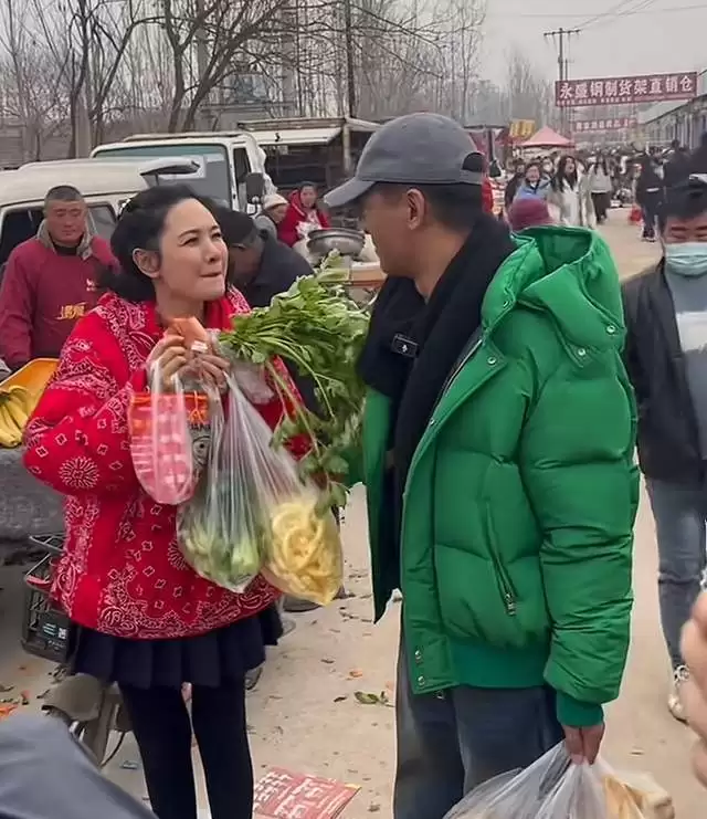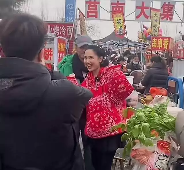 已然48岁的程莉莎早已有了岁月的痕迹,尤其是眼角鱼尾纹非常明显,不过她的状态超好,赶集的过程中更是频繁与老公郭晓东互动,至于其装扮也是异常朴素,大红色的外套搭配保暖裤,看起来少女感满满。