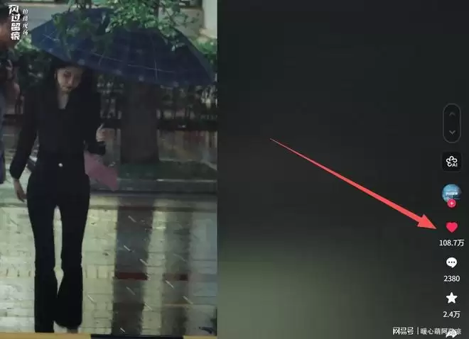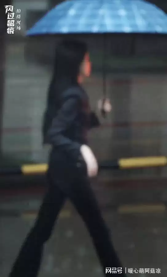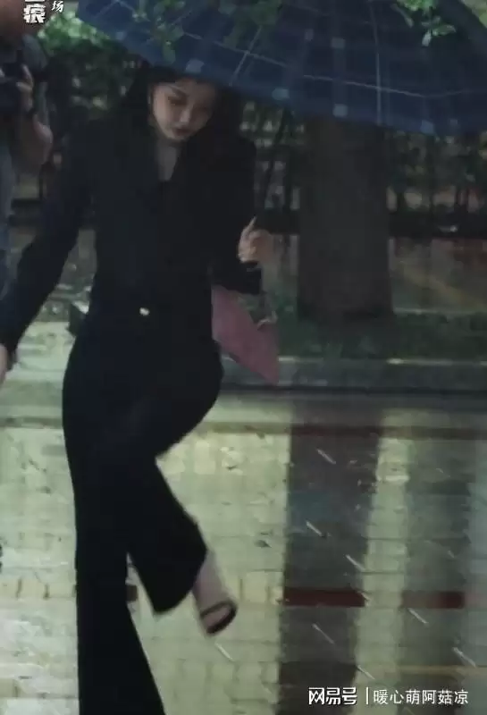 黑长直发型搭配冷艳红唇,紧身黑裤踩上恨天高,撑着一把格子伞从雨里走来的镜头,又美又飒,氛围感直接拉满。