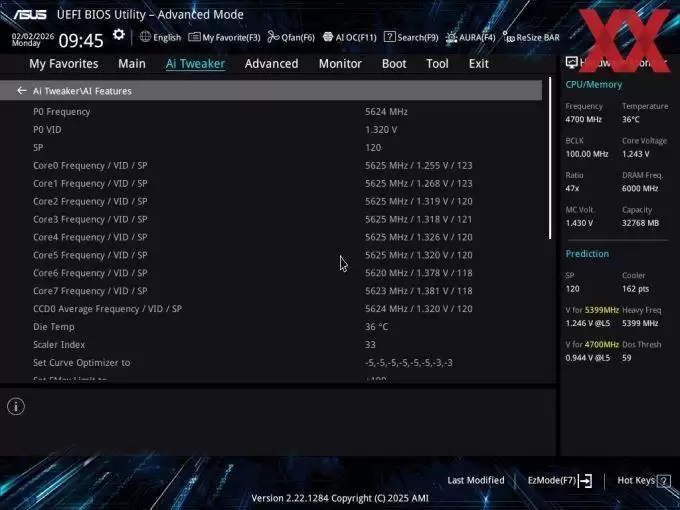IT之家注:SP评分是华硕主板BIOS中的一项独家功能。主板会根据CPU的电压-频率曲线,自动计算出一个分数。分数越高,代表这颗CPU的体质越好,超频潜力越大或在同频下电压更低。