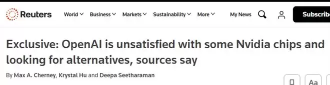 2月2日,OpenAI方面也有知情人士对路透社发出了一系列爆料。这位知情人士透露,OpenAI 对英伟达的部分最新人工智能芯片并不满意,例如软件开发以及AI与其他软件之间的交互,因此自去年起便开始寻求替代方案。