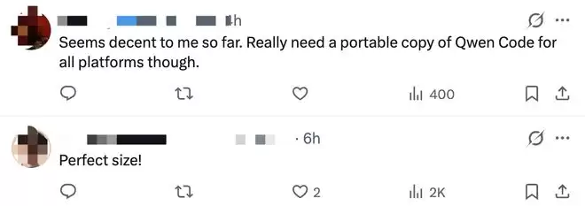 ▲社交平台X网友对Qwen3-Coder-Next模型的部分评论