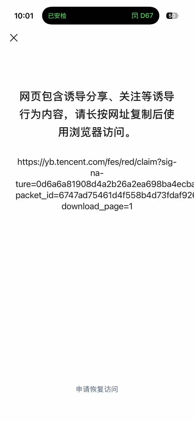 今天,三言注意到腾讯元宝分享到微信群的领取链接被设下了访问限制。