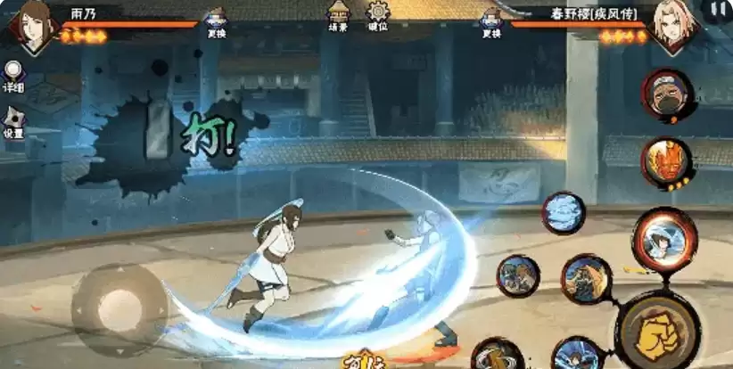 奥义技“砂阵连击”展现了砂隐特色战术配合:瞬间同步召唤志志雄与光司共同入场,志志雄施加隐身效果,使雨乃与光司进入不可见状态;随后三人协同前突,对敌方目标发起多段连续打击;终结阶段雨乃率先解除隐身,以水蛞蝓完成强力斩杀,实现高爆发的完美收尾。