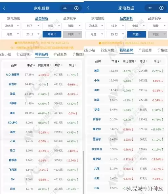 2025年,净水器市场悄悄踩了一脚急刹车。奥维云网的数据显示,净水器品类的零售额同比下滑4.5%,市场销量也呈现负增长。市场增长的势头仿佛正在快速耗尽,那种高歌猛进的场面不见了,取而代之的是略显沉寂的低速运行。难道净水器这么快就从“刚需”变成“缓需”了吗?