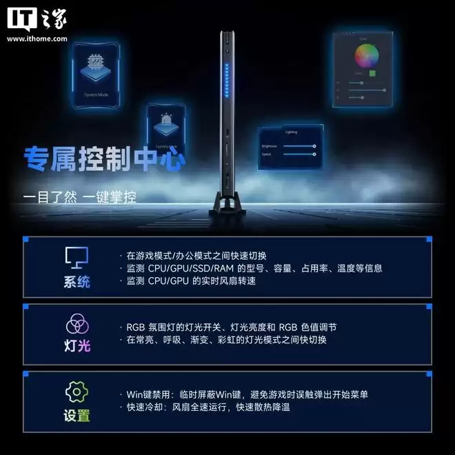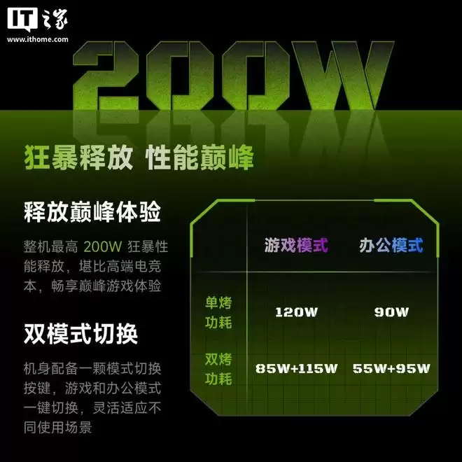 规格方面,这款迷你主机搭载了英伟达RTX 5070 Laptop显卡,配备了6根热管、双风扇以及三面出风散热系统。在开启游戏模式时,整机功耗可达200W;而在办公模式下,功耗上限则为150W。