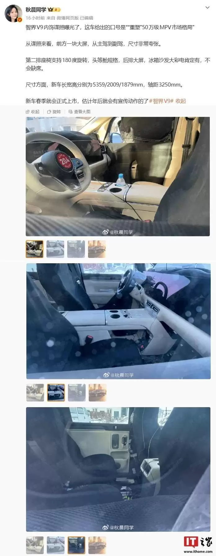 最近,鸿蒙智行智界V9这款车在汽车圈的热度持续走高。先是博主@秋晨同学分享了这款旗舰MPV的内饰谍照,引发了广泛讨论。从照片上看,车内采用了最新的三联屏设计,一整块大屏从主驾驶位一直延伸到副驾,视觉效果相当震撼。同时,方向盘采用了更为常规的设计样式,更贴合MPV的驾驶习惯,能给驾驶者带来更舒适的操控体验。