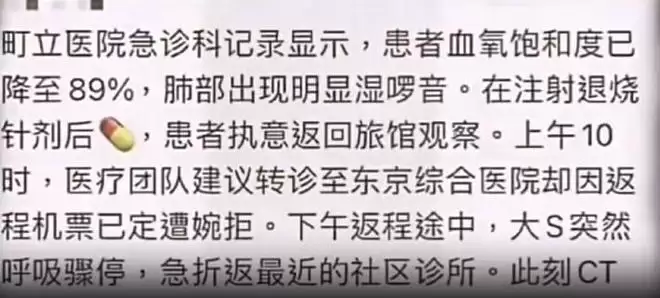 这才有了后面家人陪她一起赶往机场,准备坐飞机返回台北。但就在回家的路上,大S的病情再一次恶化,前往机场的途中心脏已经骤停。