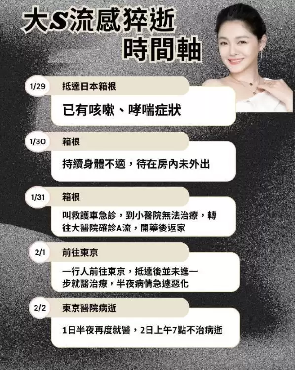 从整个抢救治疗与生病前后来看,当时像大S这一种突发情况。如果她在第一次进入医院的时候就选择重视,而不是出院,可能她的病情还有转机。