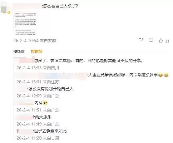 其他网友也有类似留言,认为“封杀”是表演给其他AI看的。