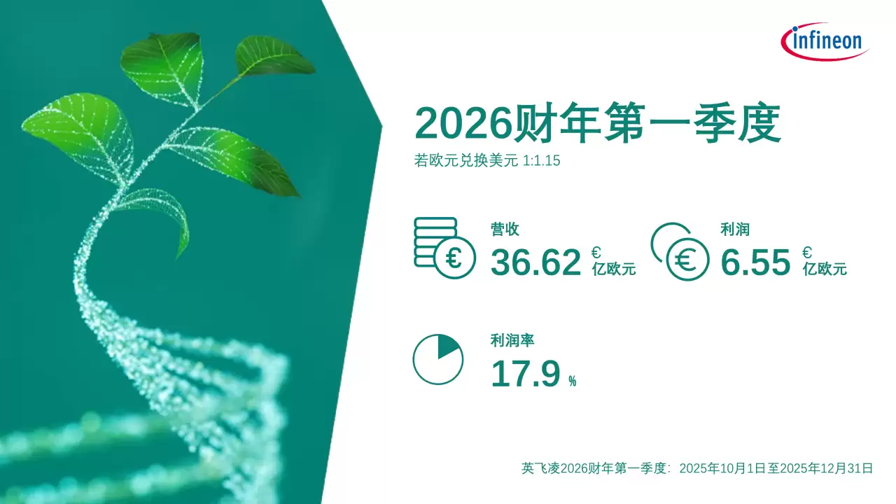 2月4日,英飞凌科技股份有限公司发布2026财年第一季度业绩报告(数据截至2025年12月31日)。