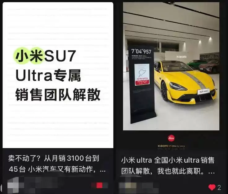 然而,随着市场热度逐渐消退,SU7 Ultra的销量进入平稳期。2025年8月,小米汽车调整销售策略,将SU7 Ultra的销售权开放给所有销售人员,仅保留极少数重点门店的专属团队。原“Ultra Master”成员转为高级销售顾问,需同时承担SU7、YU7等走量车型的销售任务,不再专注于单一车型。