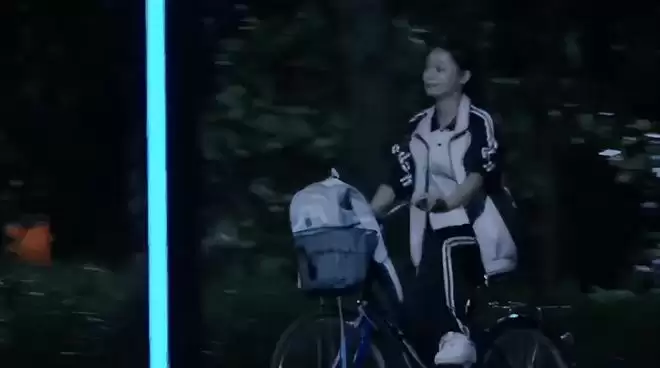 一名女学生骑着自行车,下了晚自习独自回家。