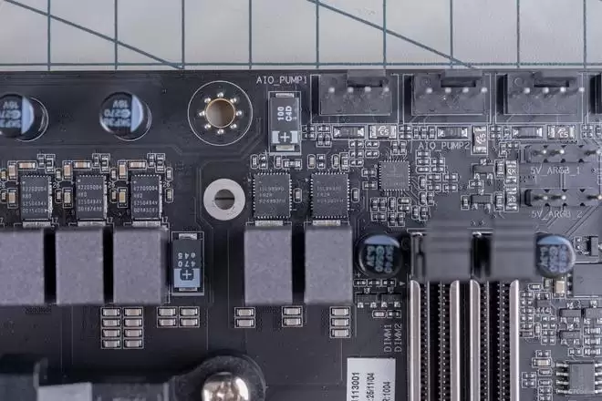 最后就是风扇RGB方面了,整块主板一共有2个4-pin的CPU风扇插针,2个4-pin的水冷泵插针以及4个4-pin的机箱风扇插针。