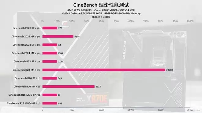 这一成绩甚至超越了许多同级别的竞品表现,充分印证了iGame X870E VULCAN OC V14 火神主板在供电调校上的深厚功力。正是凭借其旗舰级的供电模组,才让这颗“游戏神U”在极限负载下依然能维持高频运行,彻底释放了其性能潜力。