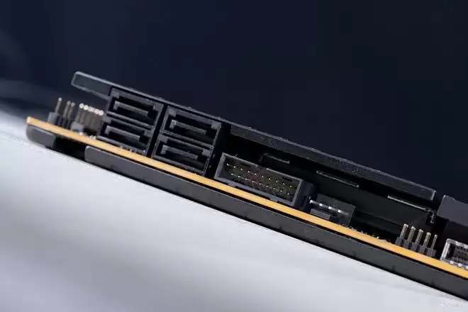 主板右侧的多个90°弯头设计接口也有保留,便于用户走线,带来非常舒服的正面一体性观感。