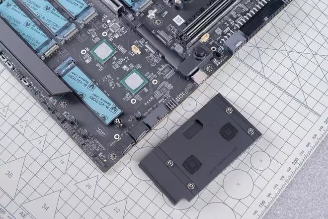 此外,其余四个M.2接口也被大面积的一体式金属散热板所覆盖,这不仅增强了主板的一体感与机械美学,更让海量素材盘也能冷静运行。