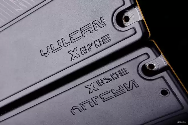 另外,这块厚实的VRM散热装甲不仅性能卓越,在外观打磨上可谓“炫技”,多道金属拉丝与磨砂质感交错,完美复刻了VULCAN显卡的“赛博机械”风格。